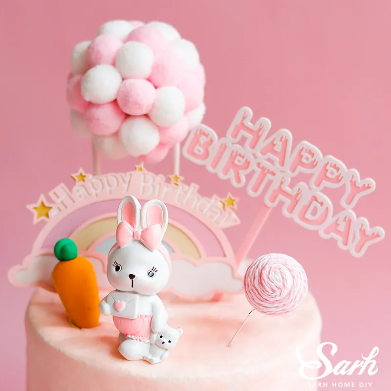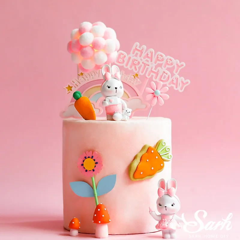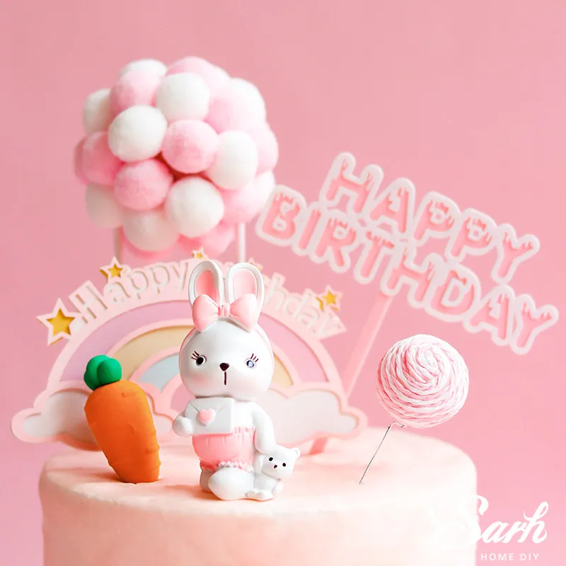 Check out our sale items Pink Dress Rabbit Decoration Hairball Arch Carrot Mushroom Cake Topper for Baby Shower Kid Happy Bi and enjoy forgive agreeable Shipping on