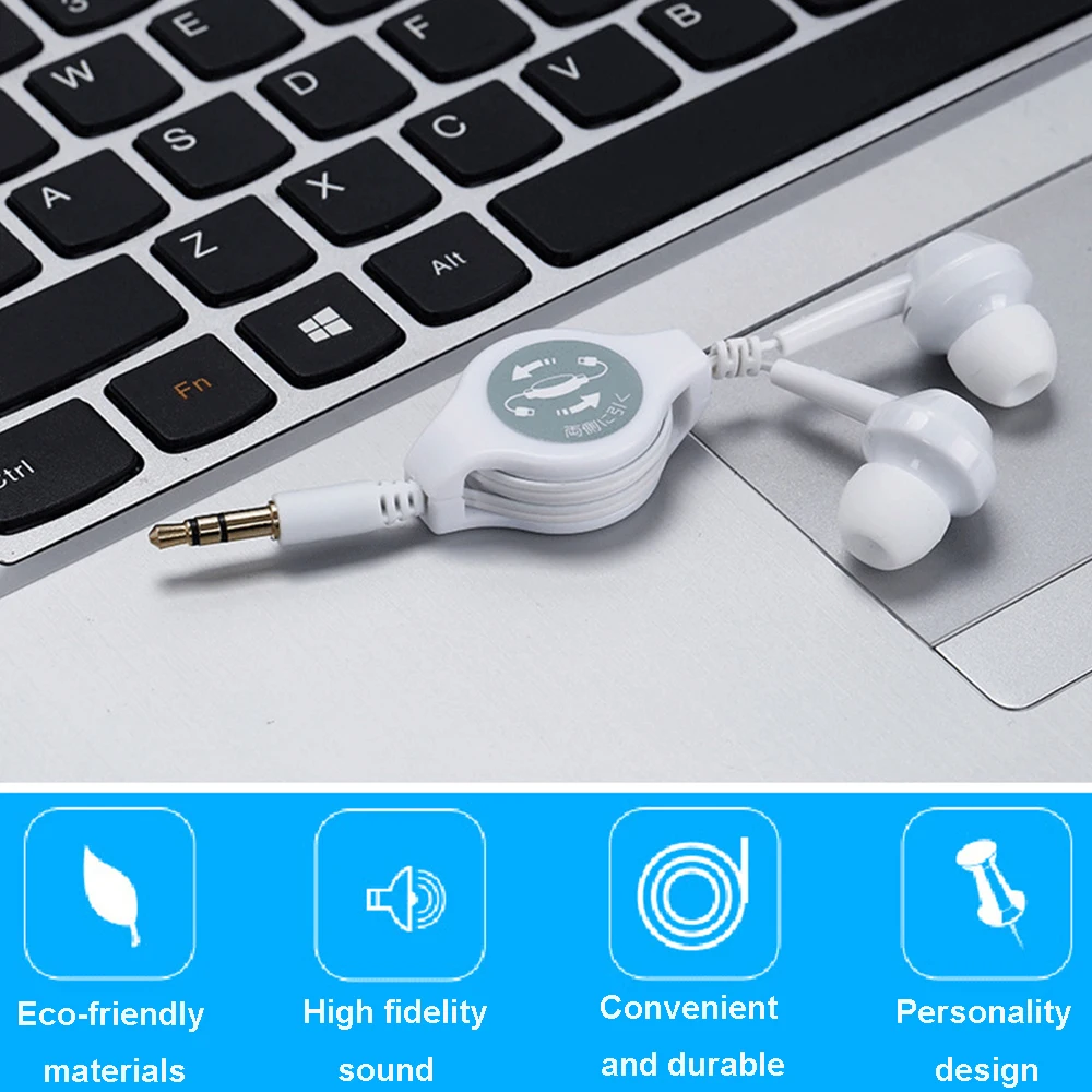 Luxury Universal Retractable Earphone Wired Earbuds Earpiece Music Listening Headset for Smartphone Comput